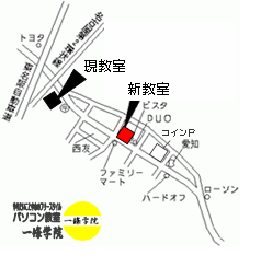 さて、パソコン教室一條学院は、さらなるサービス向上のため下記のとおり教室を移転することとなりました。これを機に、より一層の努力をしてまいりますので、受講生の皆様にはご迷惑をお掛けいたしますが、何卒倍旧のご支援ご厚誼を賜りますようお願い申し上げます。まずは略儀ながらご挨拶申し上げます