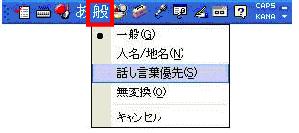 ①いつも「般」となっている変換モードを「話し言葉優先」に変更します。