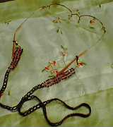 お恥ずかしながら私の作品たちです。一番お手軽なビーズのリングとメガネチェーンです。