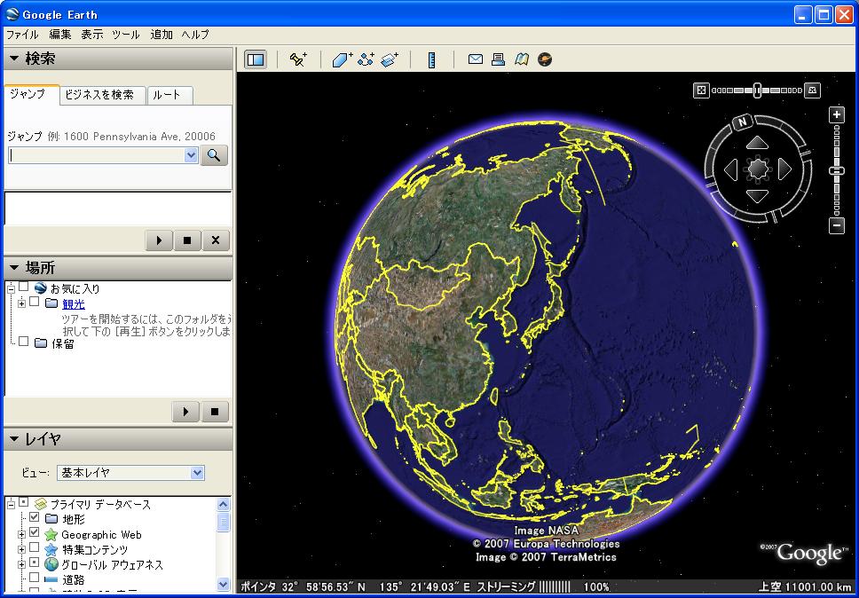 12. ダウンロードが完了すると、Google Earthが起動します。
