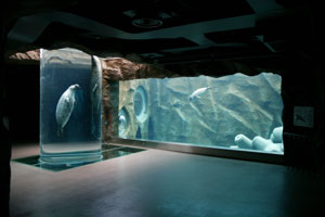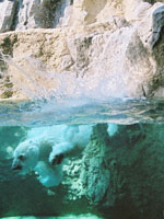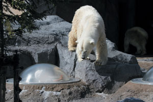 もぐもぐタイムを堪能したら、次はカプセルの中からほっきょくぐまを観られます。カプセルから覗く人間の頭が、ほっきょくぐまにはあざらしに見えるようで、近寄ってきてくれます。