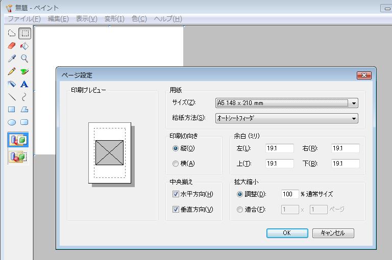ファイル→印刷プレビューで確認し、よければ