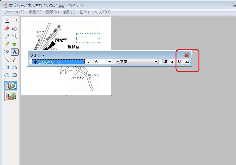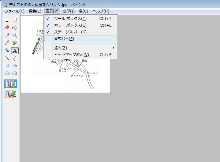表示されない場合は 「表示」→「ツールバ」ー「図」とクリックすると表示されます