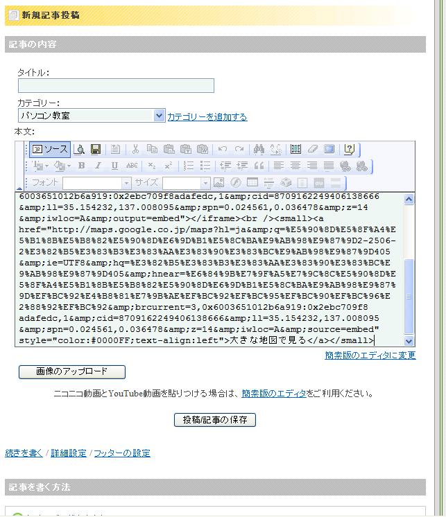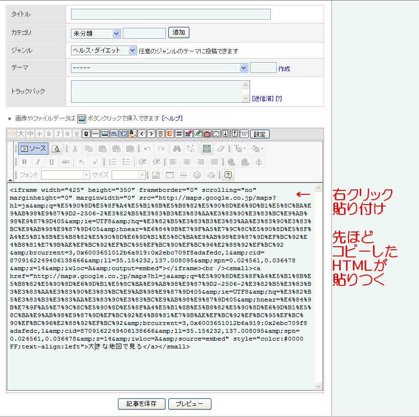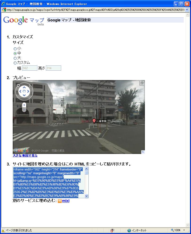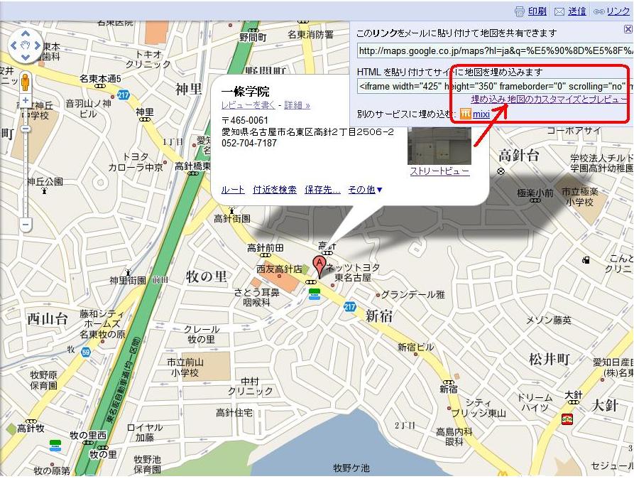 右上の「リンク」から、先ほど地図のHTMLを取得した要領で